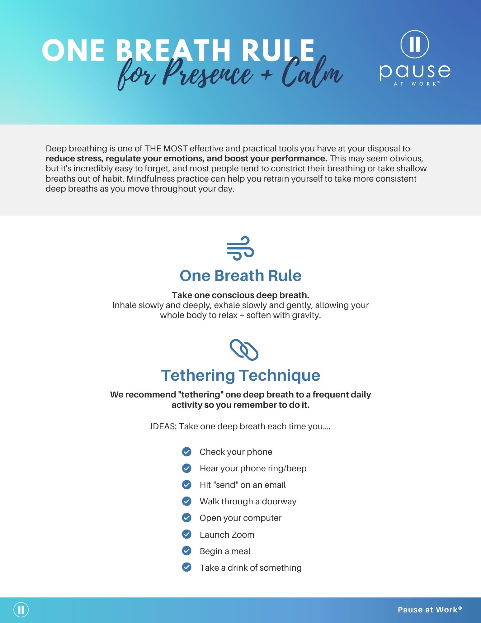 One of our on-the-go practices for the next core training is the ONE BREATH RULE where you choose a routine activity and "tether" one deep breath + relaxing your body to whatever that activity is. We recommend doing it with something like opening your phone, or opening a specific app (e.g. Instagram), or putting your keys in the ignition before you turn your car "on". You could invite your teen to try that practice with a routine activity that they do. It's pretty cool – you start to rewire your brain to take a deep breath every time you do the activity, and pretty soon, you're taking more deep breaths in a day than you would in a whole month. More on that in our next Core Training!